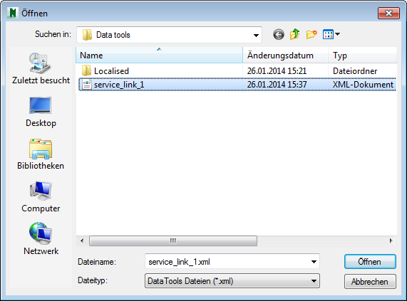 zum Ordner mit der gewünschten DataTools-Datei, wählen Sie sie aus, und klicken Sie auf