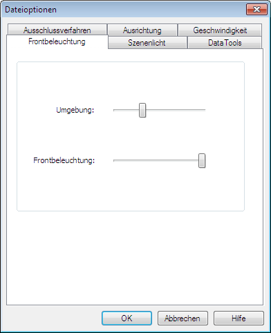 Tipp: Wenn Sie zuvor den Frontbeleuchtungsmodus aktivieren, können Sie die Auswirkungen Ihrer Änderungen auf das Rendering der Szene direkt sehen.