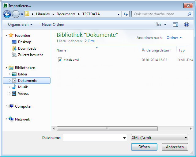 - Gehen Sie im Dialogfeld Importieren zum Ordner mit den gewünschten Konflikttestdaten, wählen Sie ihn aus, und klicken Sie auf Öffnen.