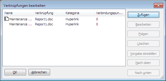 2. Klicken Sie im Dialogfeld Verknüpfungen bearbeiten auf die gewünschte Verknüpfung, und wählen Sie Bearbeiten.
