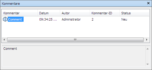 Das Fenster Kommentare ist ein fixierbares Fenster, in dem Kommentare angezeigt und verwaltet werden können.