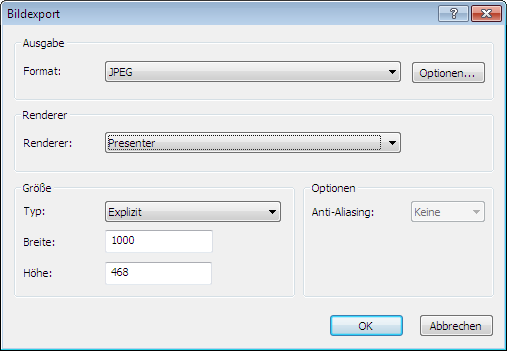 - Wählen Sie eine Rendering-Option aus der Dropdown-Liste Renderer. Weitere Informationen finden Sie unter Dialogfeld Bildexport.