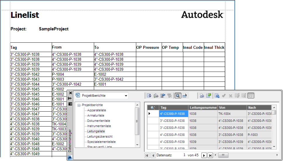 | (Der CAD-Administrator kann nach Bedarf in der Projektkonfiguration neue Berichte konfigurieren.) |