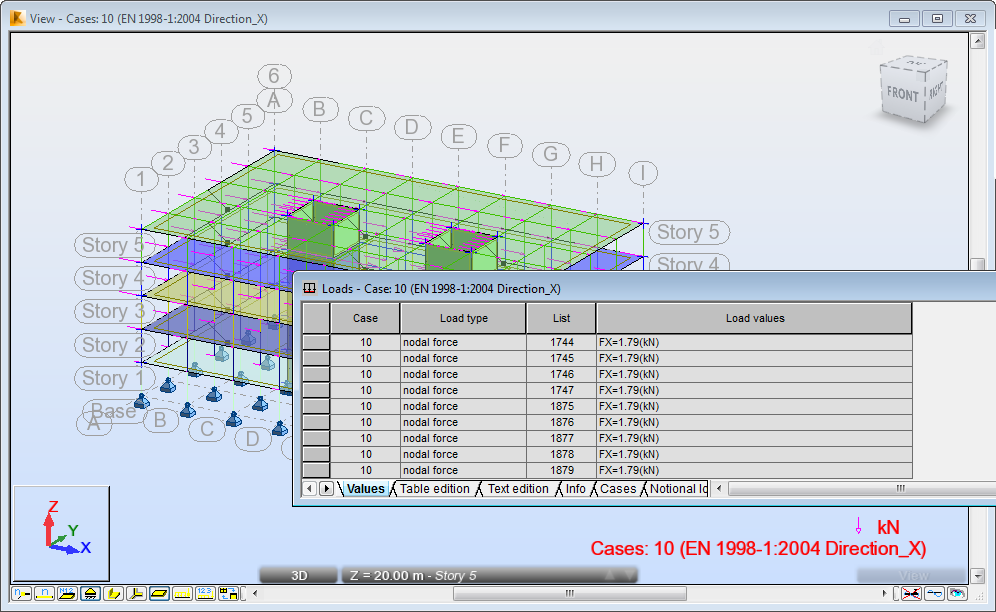 Contrarily to a static analysis, loads in a simplified seismic analysis are not set by the user directly; they are calculated by the software. The user defines parameters based on the local building code. Then, the software calculates the seismic loads and applies them to the structure. This prepares the model so the standard static analysis for internal forces and deformation calculations can be performed.
