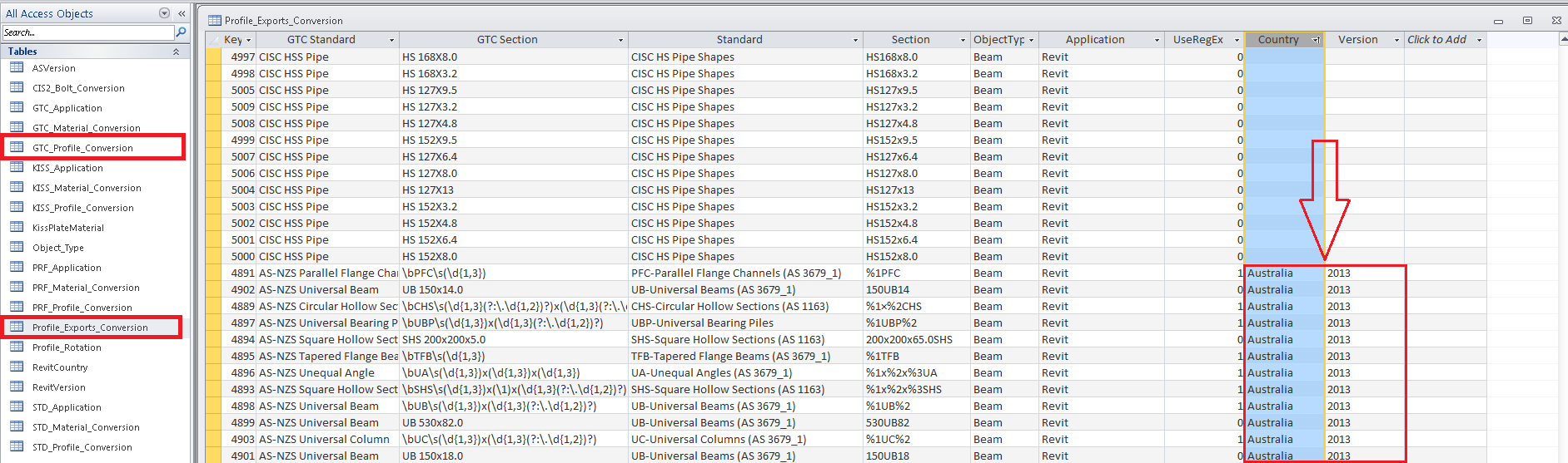 Damit die Spalte für das Land bei der Übertragung verwendet werden kann, muss in den Tabellen GTC_Profile_Conversion und Profile_Export_Conversion in GTCMapping.mdb ein Wert in der Spalte für die Version angegeben werden.