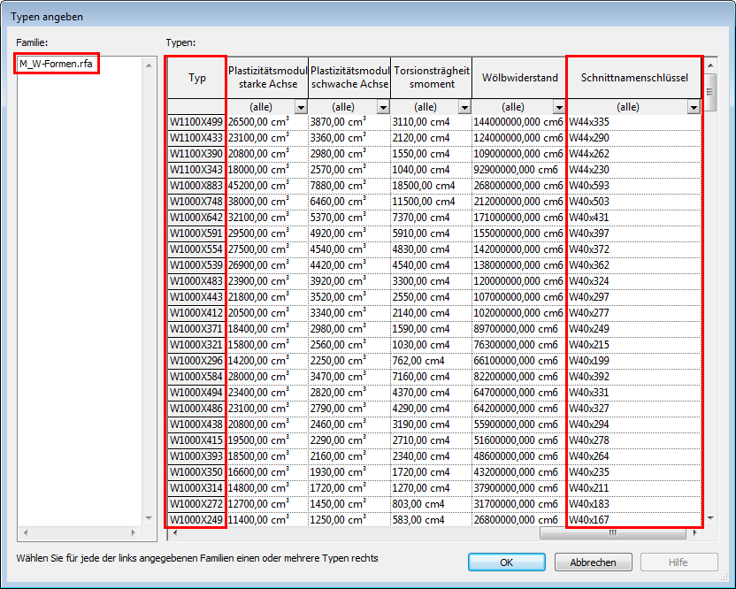 Der Parameter Familiennamenschlüssel wird 1 zu 1 dem Tabellennamen in Advance Steel zugeordnet. Dieser Parameter wird in der Familie gespeichert.