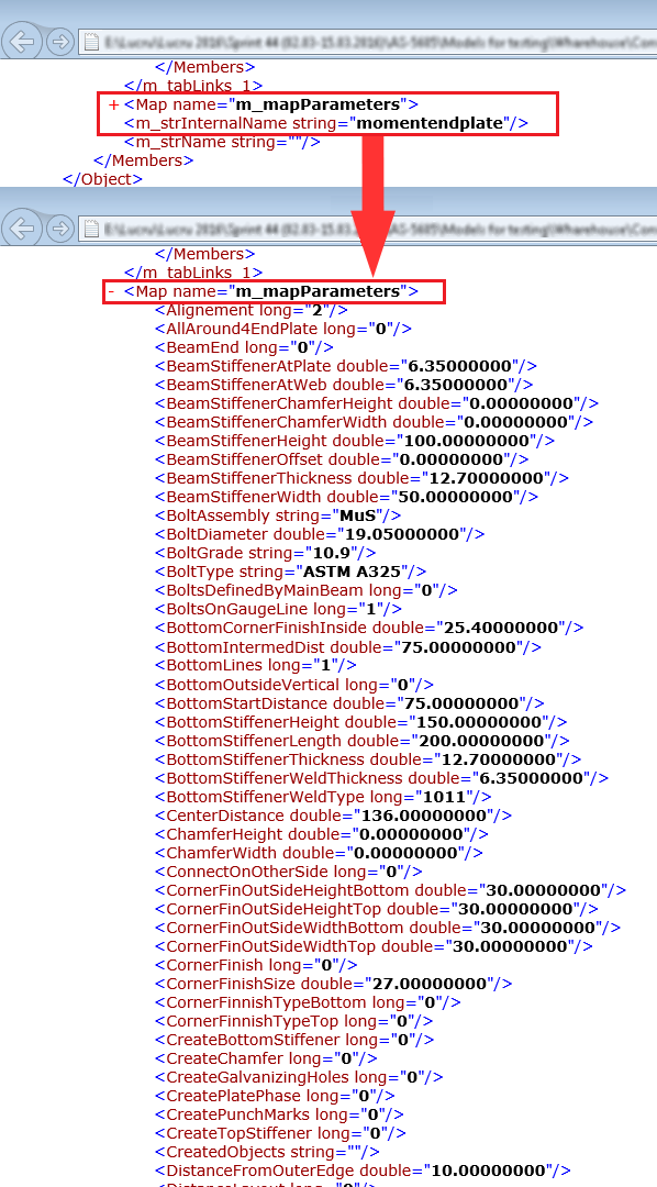 Beim Exportieren einer Stahlverbindung in das SMLX-Format werden alle Parameter aus dem Parametermenü der Stahlverbindung in die XML-Datei exportiert.