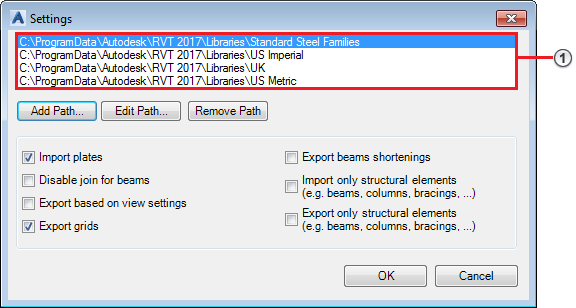 - Pfadkonfiguration für Revit-Bibliothek - Advance Steel-Schnittdefinitionen