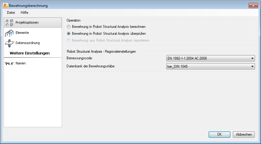 Nachdem Sie ein Stahlbetonkonstruktionselement ausgewählt haben, starten Sie das Modul Bewehrungsberechnung: