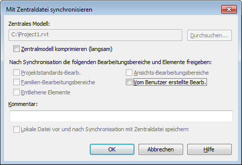 Sie versuchen, eine lokale Datei mit dem zentralen Projektmodell zu synchronisieren.