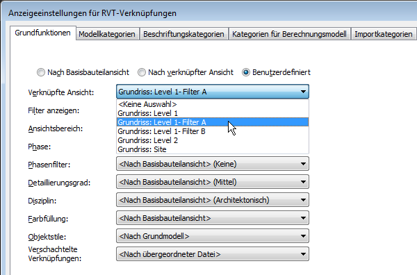 - Gehen Sie im Dialogfeld Anzeigeeinstellungen für RVT-Verknüpfungen auf der Registerkarte Grundfunktionen wie folgt vor: