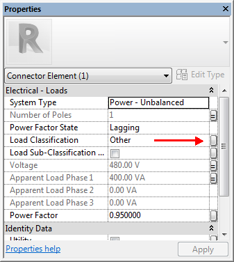 - Klicken Sie in der Eigenschaftenpalette auf die Schaltfläche rechts neben dem Wert für die Lastklassifizierung.