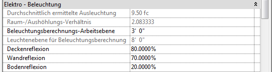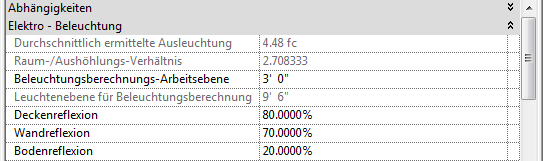 Das Raum-/Aushöhlungs-Verhältnis wird basierend auf Raum-Aushöhlungs-Höhe und der Beleuchtungsberechnungs-Arbeitsebene berechnet. Dies stellt eine Eigenschaft jeder Rauminstanz dar.