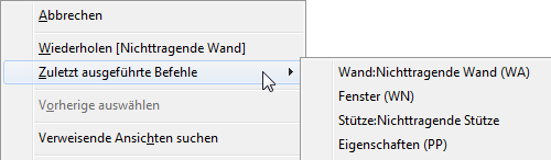 - Klicken Sie mit der rechten Maustaste in die Zeichnung, und klicken Sie auf Zuletzt ausgeführte Befehle