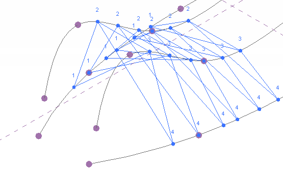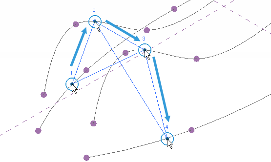 4. Platzieren Sie die adaptiven Punkte des Modells in dem Konzeptentwurf. In diesem Beispiel befindet sich jeder Punkt auf einem anderen Pfad. Dabei spielt die Reihenfolge der Punktplatzierung eine wichtige Rolle. Wenn es sich bei dem Bauteil um eine Extrusion handelt, wird die Richtung der Extrusion umgekehrt, wenn die Punkte gegen den Uhrzeigersinn platziert werden.