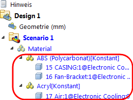 Die Designstudienleiste zeigt alle zugewiesenen Einstellungen unter dem entsprechenden Zweig: