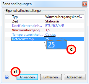 Die Designstudienleiste für das Winterszenario sollte jetzt die beiden geänderten Temperaturwerte enthalten. Alle anderen Werte müssen den Werten des Sommerszenarios entsprechen: