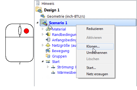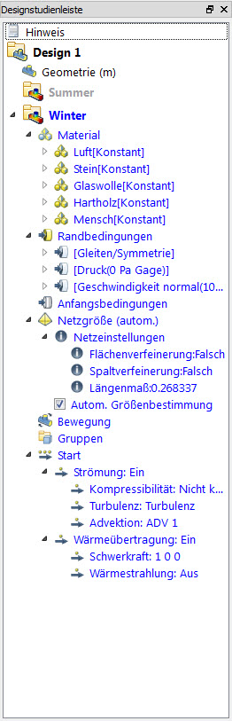 Wie bereits erwähnt wird bei Upfront CFD mit mehreren Designvarianten bzw. Szenarien gearbeitet, um das Produkt zu optimieren. Sie haben bereits ein Sommerszenario erstellt. Jetzt klonen Sie einfach das Sommerszenario und ändern die Temperaturwerte, um so das Winterszenario zu erhalten.