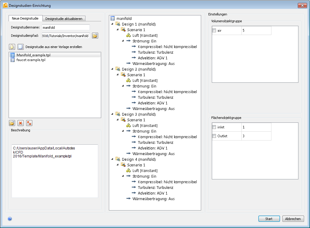 Geben Sie Design 2 als Designnamen ein, und wählen Sie manifold-02 als Konfiguration.