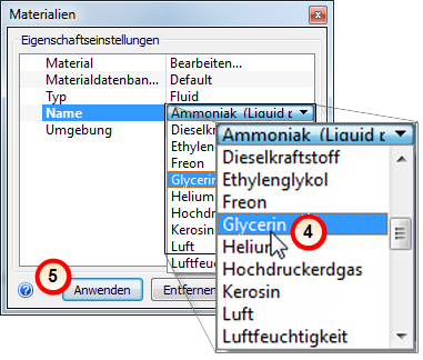 4. Wählen Sie aus dem Menü Name die Option Glaswolle aus.