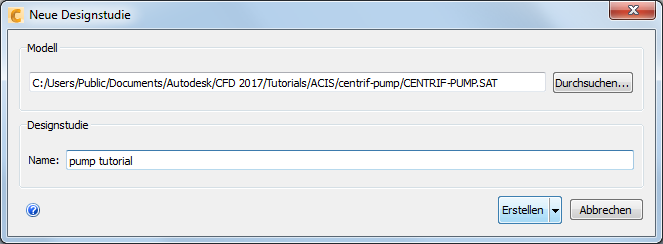 Navigieren Sie über das Dialogfeld des Datei-Managers zu Benutzer\Öffentlich\Öffentliche Dokumente\Autodesk\CFD 2017\Lernprogramme<Dateityp>\centrif-pump.