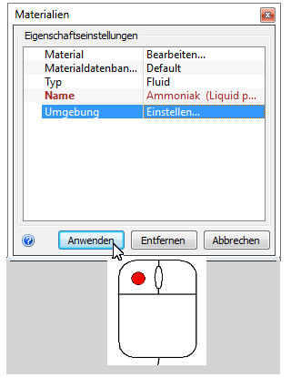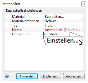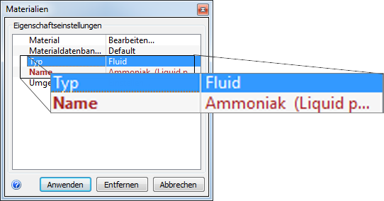 4. Stellen Sie sicher, dass im Schnellbearbeitungs-Dialogfeld der Typ auf Fluid gesetzt ist und Luft als Name angegeben ist.