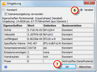6. Klicken Sie im Dialogfeld Materialumgebung auf Variabel.
