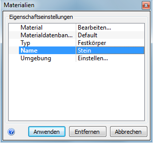 Geben Sie im Schnellbearbeitungs-Dialogfeld Material Typ = Festkörper ein.