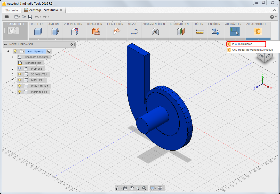 Erweitern Sie das Menü Add-Ins, und wählen Sie In CFD simulieren aus.
