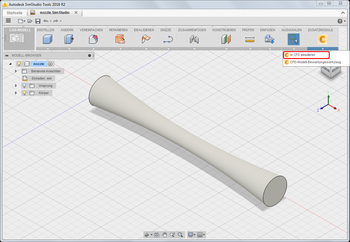 Erweitern Sie das Menü Add-Ins, und wählen Sie In CFD simulieren aus.