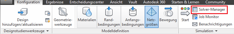 1. Um den Solver-Manager zu öffnen, klicken Sie auf Konfiguration (Registerkarte) > Simulation (Gruppe) > Solver-Manager.