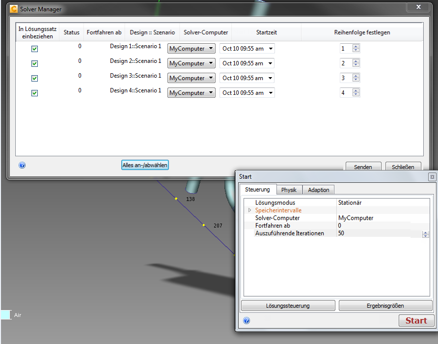 Um den Solver-Manager zu öffnen, klicken Sie mit der rechten Maustaste außerhalb des Modells, und wählen Sie Solver-Manager....