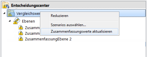 Klicken Sie im Entscheidungscenter mit der rechten Maustaste auf Vergleichswerte und klicken Sie auf Zusammenfassungswerte aktualisieren.
