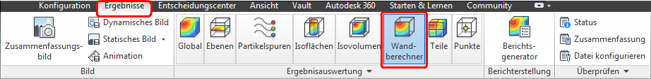 Klicken Sie zum Ermitteln der Kräfte an den Wandflächen auf Wandergebnisse auf der Registerkarte Ergebnisse: