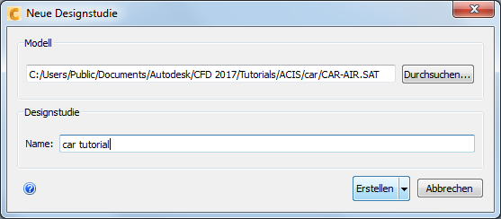Navigieren Sie im Dialogfeld Dateimanager zu Benutzer\Öffentlich\Öffentliche Dokumente\Autodesk\CFD 2017\Tutorials\<Dateityp>\car.