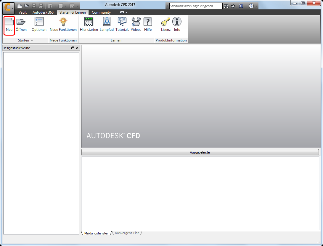 Autodesk® CFD startet und erstellt die Designstudie für das Lernprogramm.