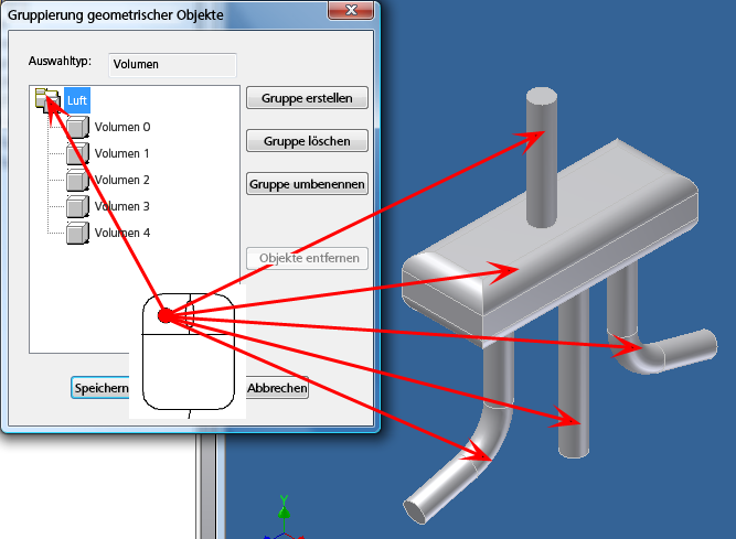 Wählen Sie Volumen. Geben Sie "Luft" als Gruppennamen ein.