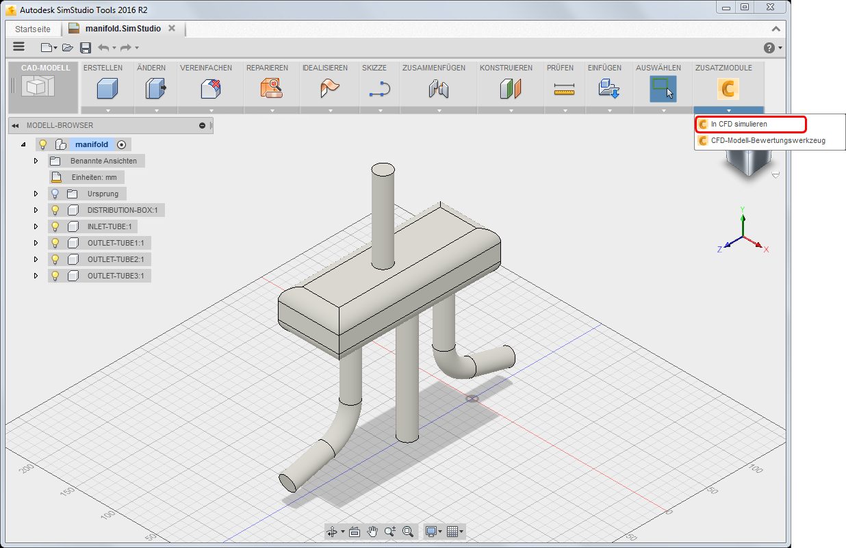 Erweitern Sie das Menü Add-Ins, und wählen Sie In CFD simulieren aus.