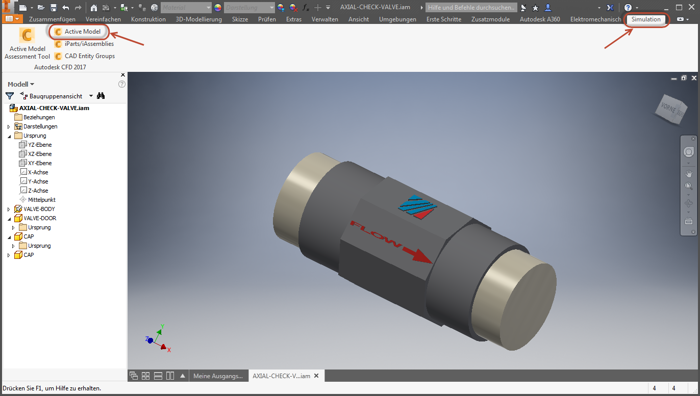 Benutzer\Öffentlich\Öffentliche Dokumente\Autodesk\CFD 2017\Lernprogramme\<CAD-Anwendung>\axial-check-valve