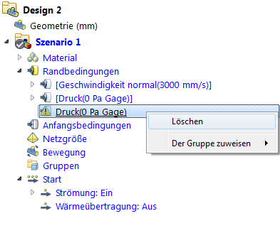 Klicken Sie mit der rechten Maustaste auf die Einstellung für Randbedingungen, und wählen Sie Löschen.