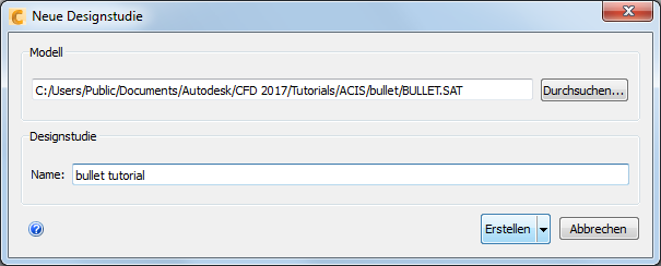 Navigieren Sie im Dialogfeld Dateimanager zu Benutzer\Öffentlich\Öffentliche Dokumente\Autodesk\CFD 2017\Tutorials\<Dateityp>\bullet.