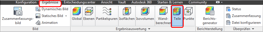 Klicken Sie auf der Registerkarte Ergebnisse auf Teile: