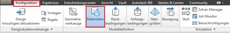 Klicken Sie auf Materialien auf der Registerkarte Konfiguration: