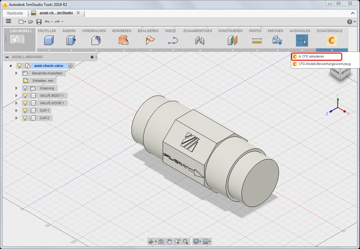 Erweitern Sie das Menü Add-Ins, und wählen Sie In CFD simulieren aus.