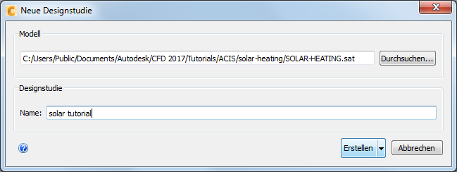 Navigieren Sie im Dialogfeld Dateimanager zu Benutzer\Öffentlich\Öffentliche Dokumente\Autodesk\CFD 2017\Tutorials\<Dateityp>\solar-heating.