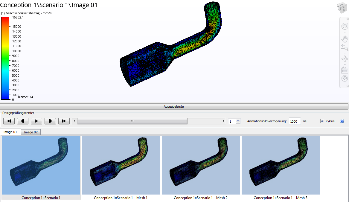 Um die vier Netze zu vergleichen, verwenden Sie den Schieberegler und die VCR-Steuerelemente im Designprüfungscenter.