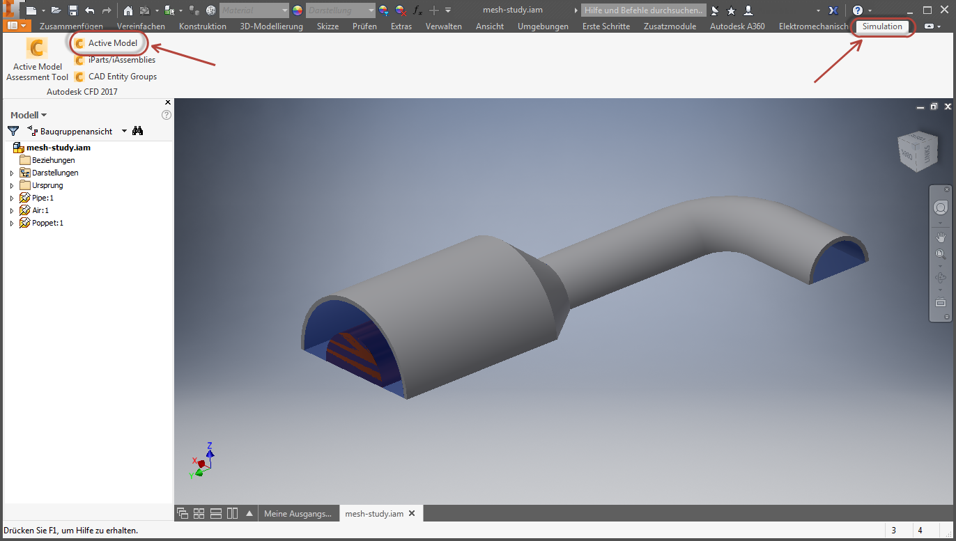 Wenn Sie z. B. aus Autodesk® Inventor starten, klicken Sie auf Simulation und Aktives Modell: