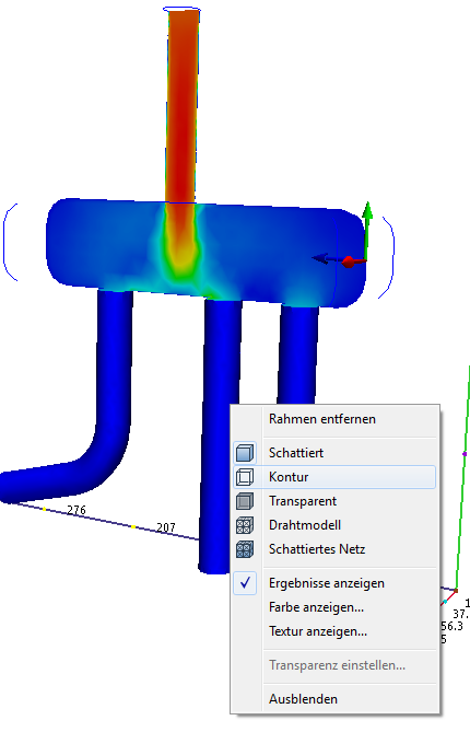 Die Verteilerschenkel sollten als Kontur und nicht schattiert dargestellt werden. Wenn sie schattiert sind, ändern Sie ihre Darstellung, indem Sie mit der rechten Maustaste auf jeden Schenkel klicken und Kontur auswählen.