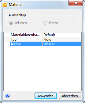 Im Material-Schnellbearbeitungs-Dialogfeld: Typ = Fluid