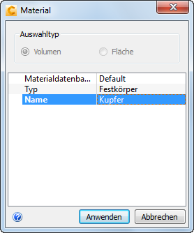Geben Sie im Schnellbearbeitungs-Dialogfeld Material Typ = Festkörper ein.